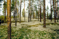 Pine-woods are very common for Karelia. Pine is able to grow either on dry and sandy soil or on over dewy bog. However it feels the best growing in the conditions of a temperate moistening on a soil rich with mineral resources. Here it creates so called greenmossed pineries, under flat of which the cover of bushes magnificently expands: bilberries, cranberries, crowberries, wild rosemary, and also many other wood herbs.
