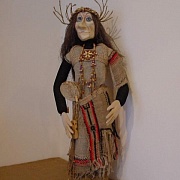Shaman is a man who knows how to communicate with spirits and use them to cure diseases or control the natural elements. Shaman had almost unlimited power which makes people to fear and respect them. Shamans magical instrument is tambourine and shamans are raises spirits with it. Shaman doll was the first doll that sparks the Tatiana Kalininas desire to create this collection.