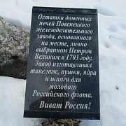 Здесь, во время высокого пребывания Своего, постигнув дары и силу окрестной природы, Он учредил на берегу Повенчанки литейный завод для отлития морских и крепостных чугунных пушек. Завод был очень значителен. Чугунных работников было до 500 человек из крестьян раскольников. Можно сказать, что время существование завода было кратким периодом цветущего состояния жителей. Этот завод принадлежал Короне, а с 1724 г. былъ отдан на откуп посадскому человеку Трофиму Копче, с платою казне десятой доли обработанных на этом заводе чугуна и железа. По смерти арендатора завода Копчи, последовавшей в 1734 году, не было желающих взять упомянутый завод на аренду и он был забыт. Теперь сохранилось об этом заводе одно только воспоминание, рождаемое развалинами доменных печей.